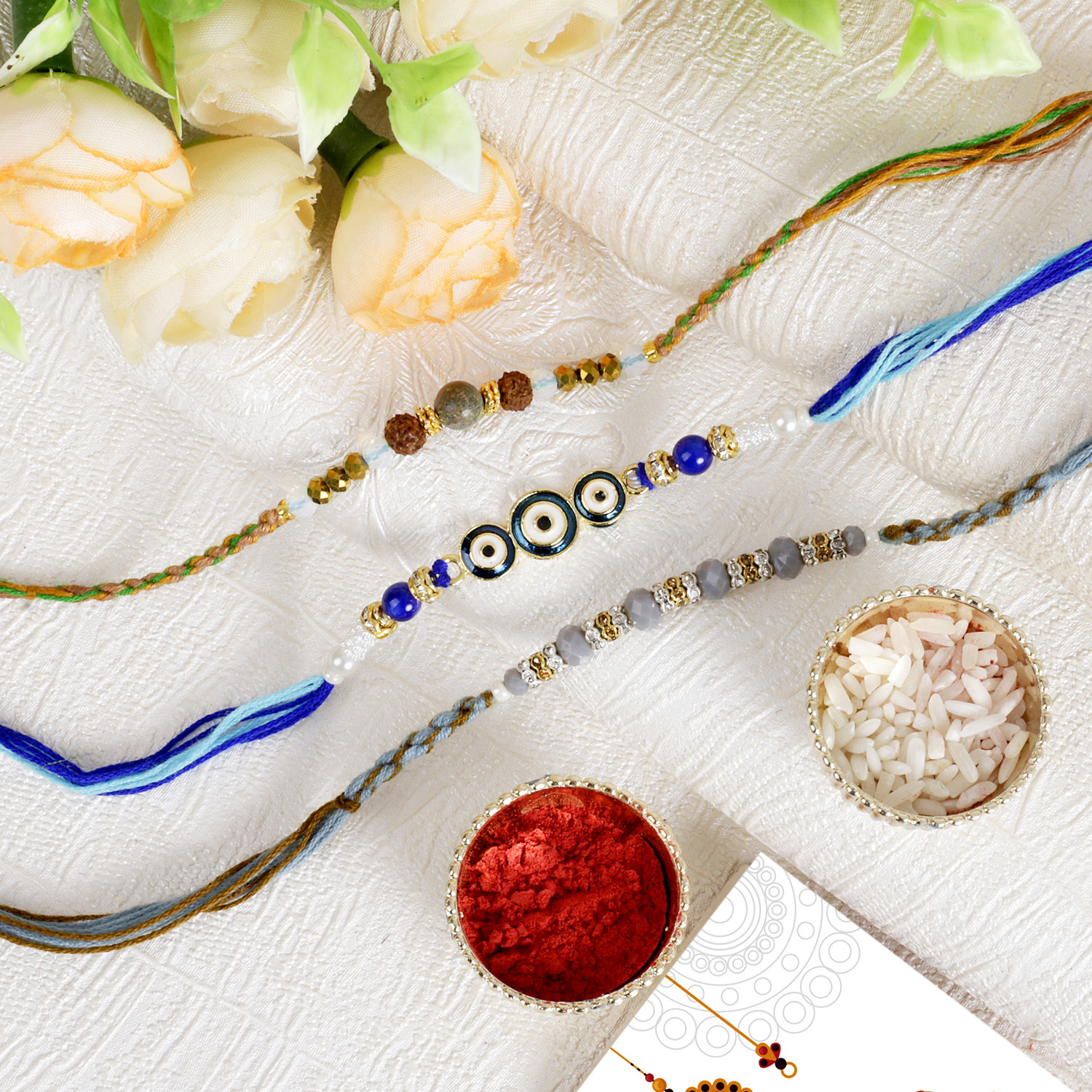 €17.213 DESIGNER RAKHIS 1 RAKHSHA BANDHAN WISH CARD 1 SET OF COMPLIMENTARY ROLI CHAVAL (TILAK) Important Information: This item is only for shipping in the USA. The user should carefully read the description of gifts, shipping declaration, and...€17.21 -